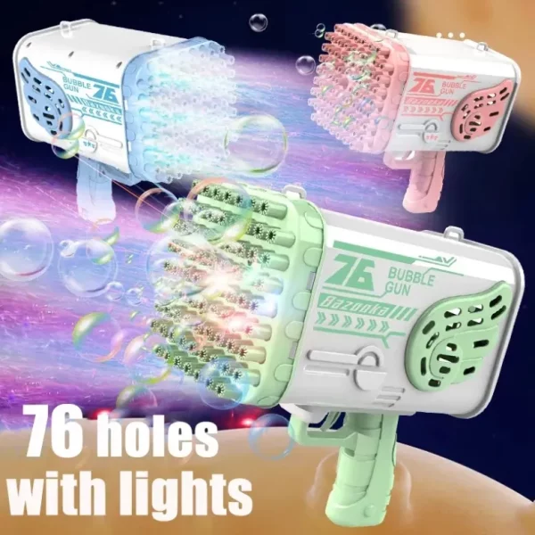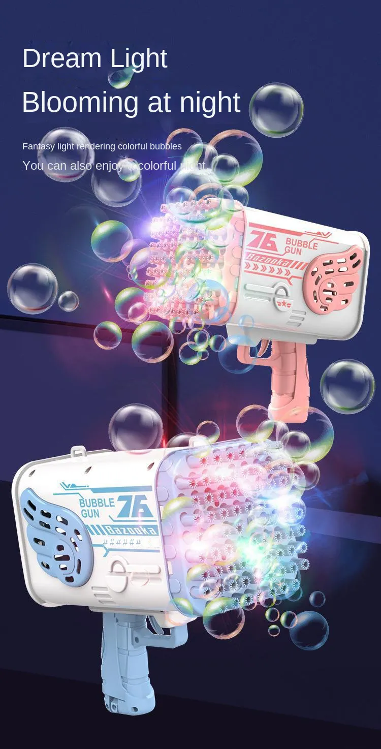 76 Holes Bazooka Bubble Gun Soap Bubbles Machine Gun Shape Automatic Blower With Light Toys For Kids Pomperos Children‘s Day Gift