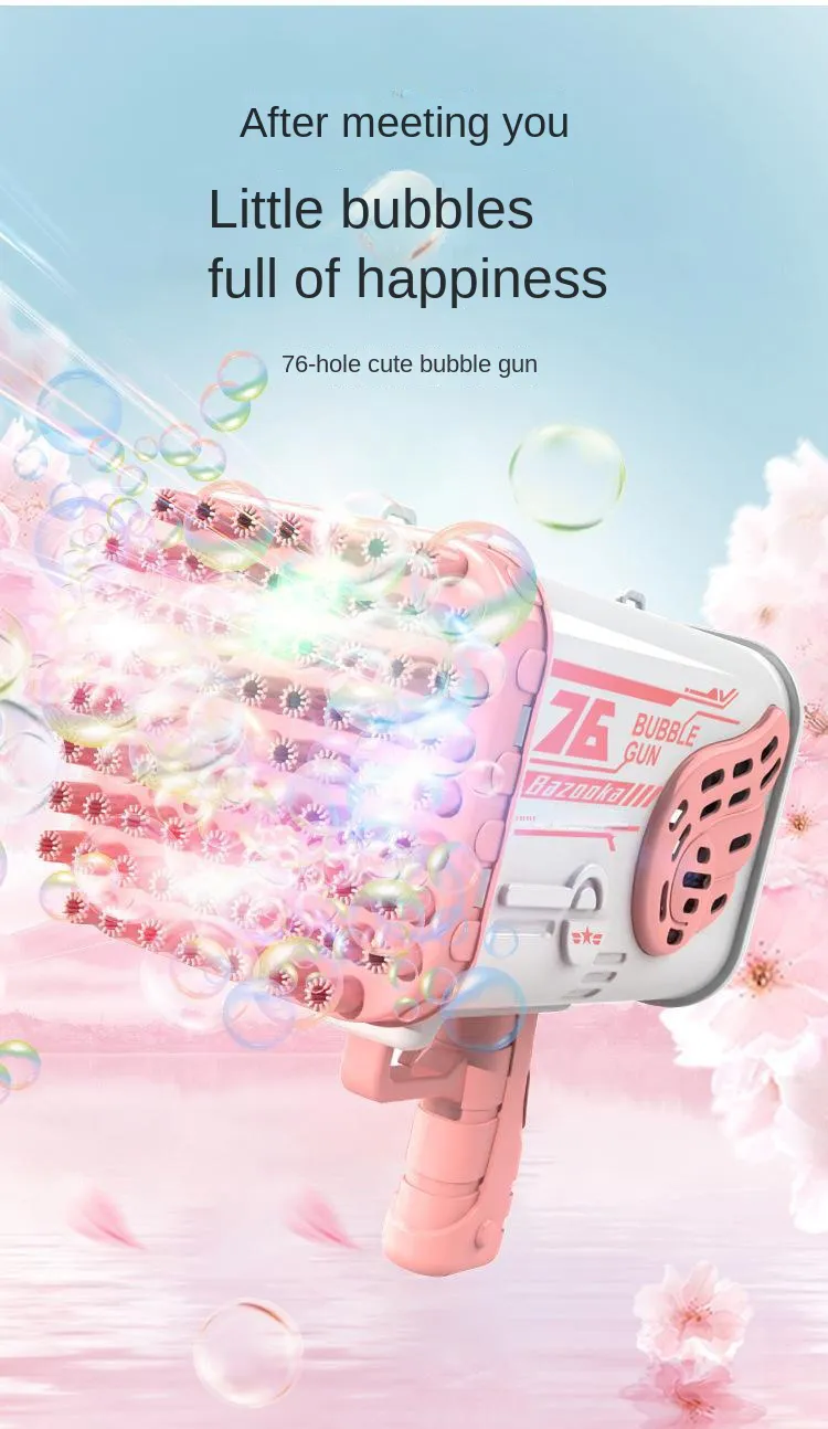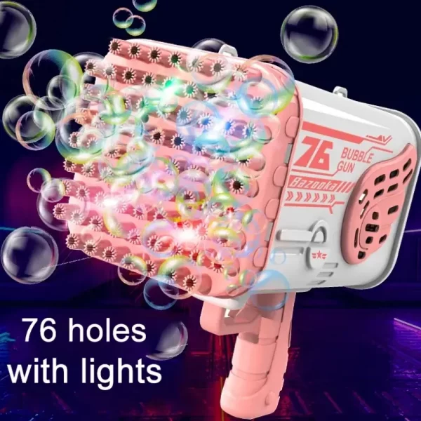 - Innovative Bubble Gun Design: The bubble rocket launcher has 76 bubble holes, blowing thousands of colorful bubbles every minute.with colorful light.more funny in night