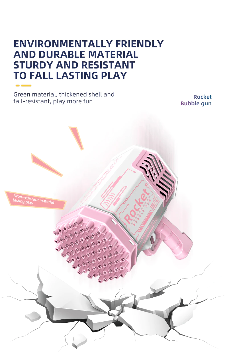 - Innovative Bubble Gun Design: The bubble rocket launcher has 69 bubble holes, blowing thousands of colorful bubbles every minute.with colorful light.more funny in night