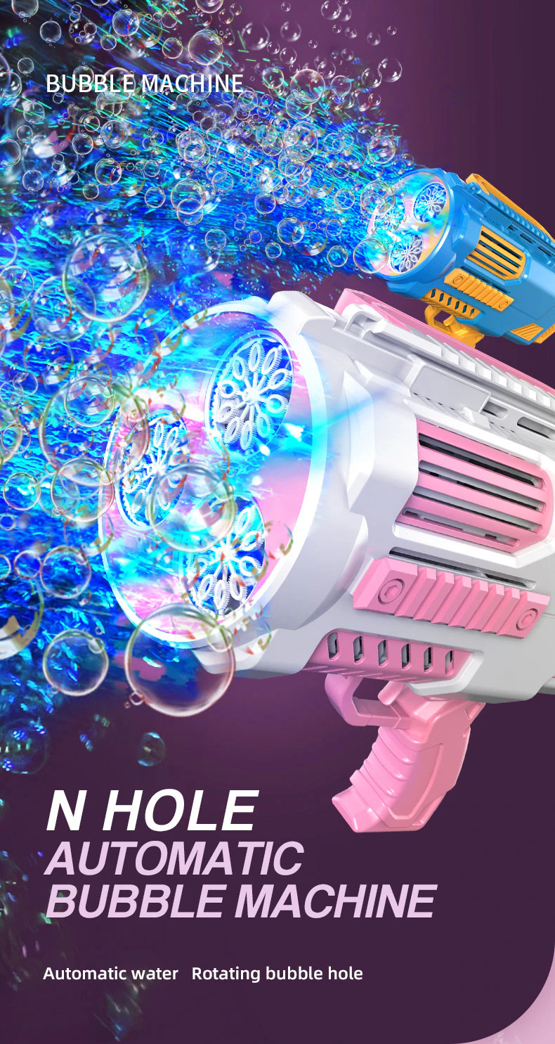 At the heart of the N-Hole model is its latest Rocket Launcher design that releases a sky-full of bubbles, captivating everyone’s attention and adding a sprinkle of magical fun. The colorful bubbles and the LED light create a spectacle that’s as mesmerizing as it is to participate in. This product ensures joy, fun, and entertainment for you and your family.