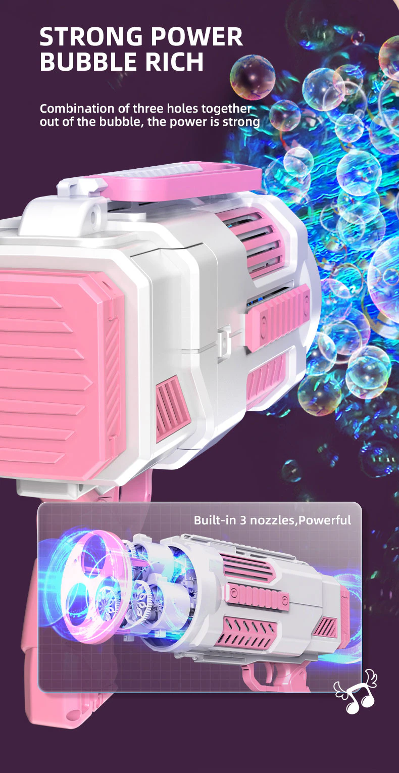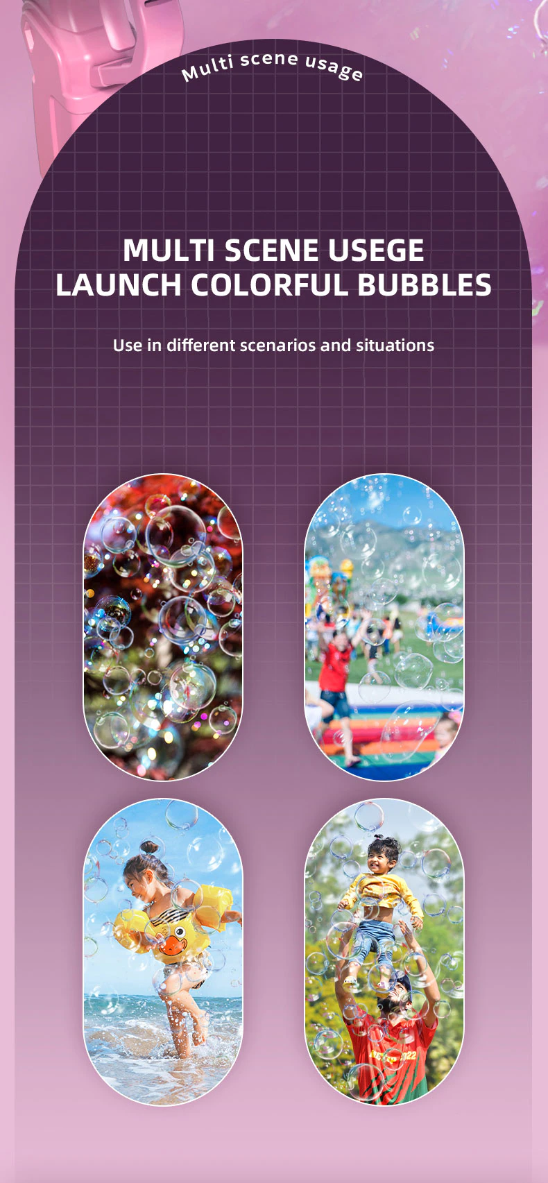 - 【The Latest Rocket Launcher Bubble Machine】The bubble machine with LED . it can blow out hundreds of bubbles per minute. when bubbles all over the sky, the color bubble can attract their attention. and satisfy preferences, give you and your family more joys.