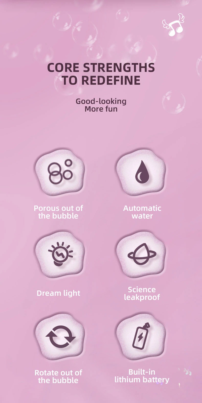 Safety is paramount to us. That’s why our bubble machine is child-safe and non-toxic. The solution meets all safety tests and is safe on kids’ skin and faces.